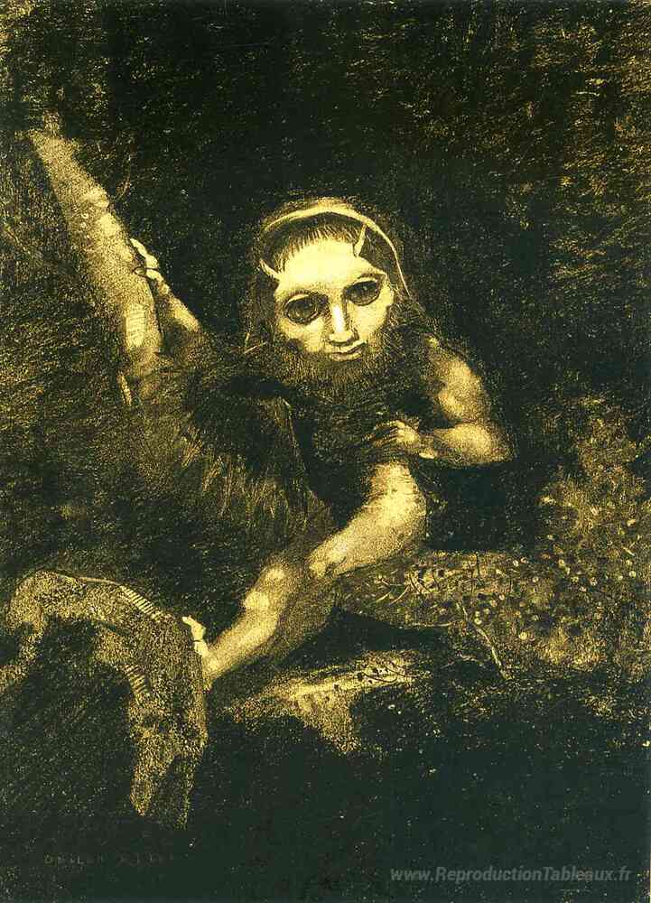 Nous vous proposons une reproduction artisanale sur toile du célèbre tableau 'Caliban sur une branche' de Odilon Redon, provenant du Musée de la Reproduction.