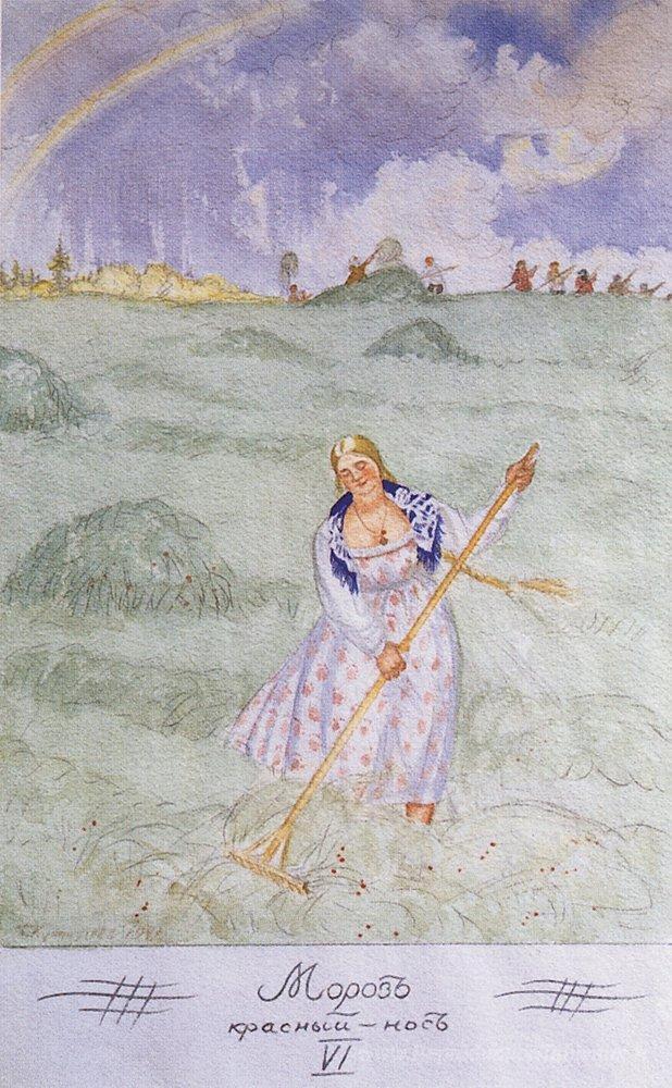 Nous vous proposons une reproduction artisanale sur toile du célèbre tableau 'Daria enlève le foin' de Boris Kustodiev, provenant du Musée de la Reproduction.