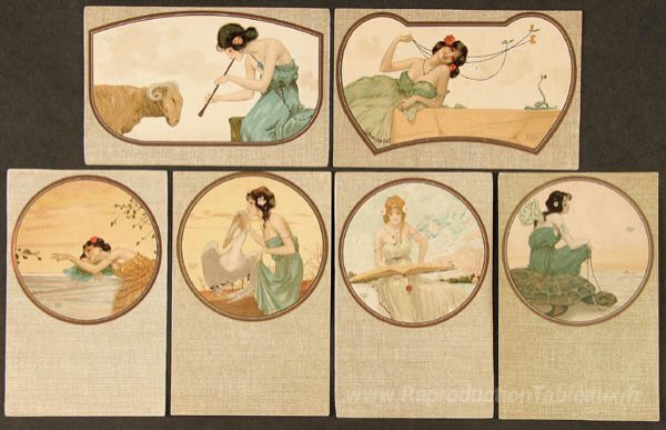 Nous vous proposons une reproduction artisanale sur toile du célèbre tableau 'Favole' de Raphael Kirchner, provenant du Musée de la Reproduction.