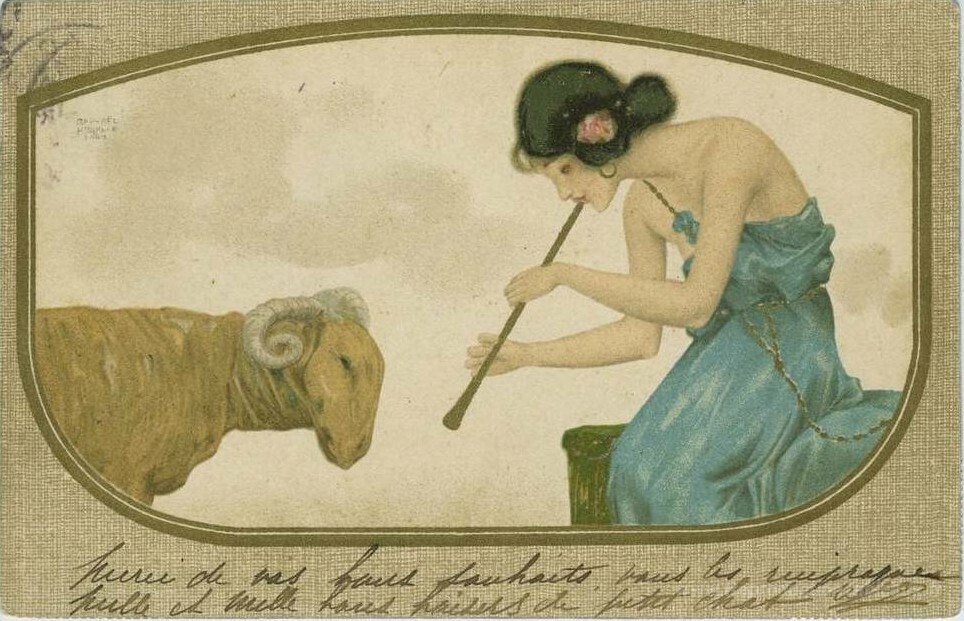 Nous vous proposons une reproduction artisanale sur toile du célèbre tableau 'Favole' de Raphael Kirchner, provenant du Musée de la Reproduction.