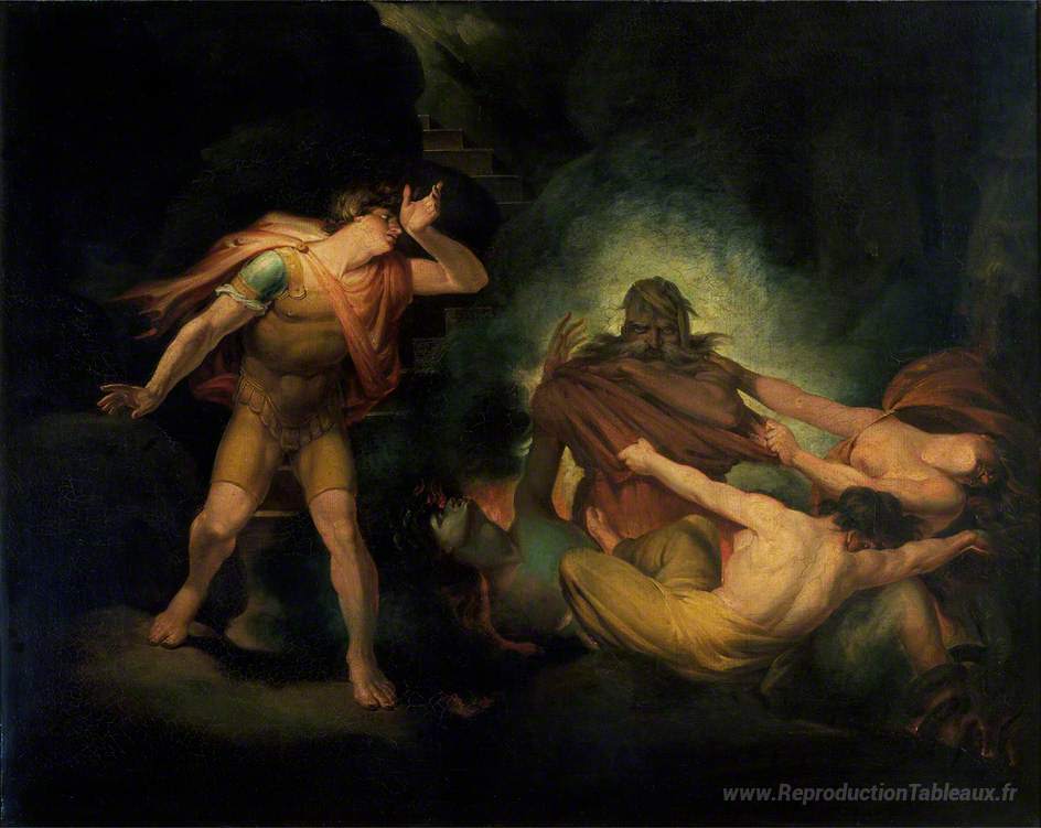 Nous vous proposons une reproduction artisanale sur toile du célèbre tableau 'Le roi du feu' de Henry Fuseli, provenant du Musée de la Reproduction.