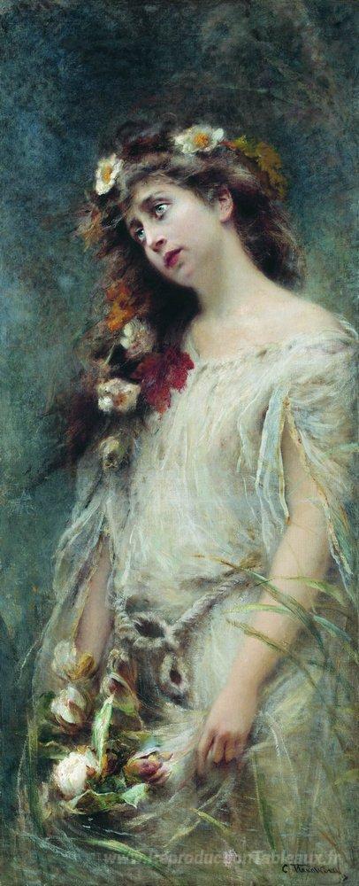 Nous vous proposons une reproduction artisanale sur toile du célèbre tableau 'Ophélia' de Konstantin Makovsky, provenant du Musée de la Reproduction.