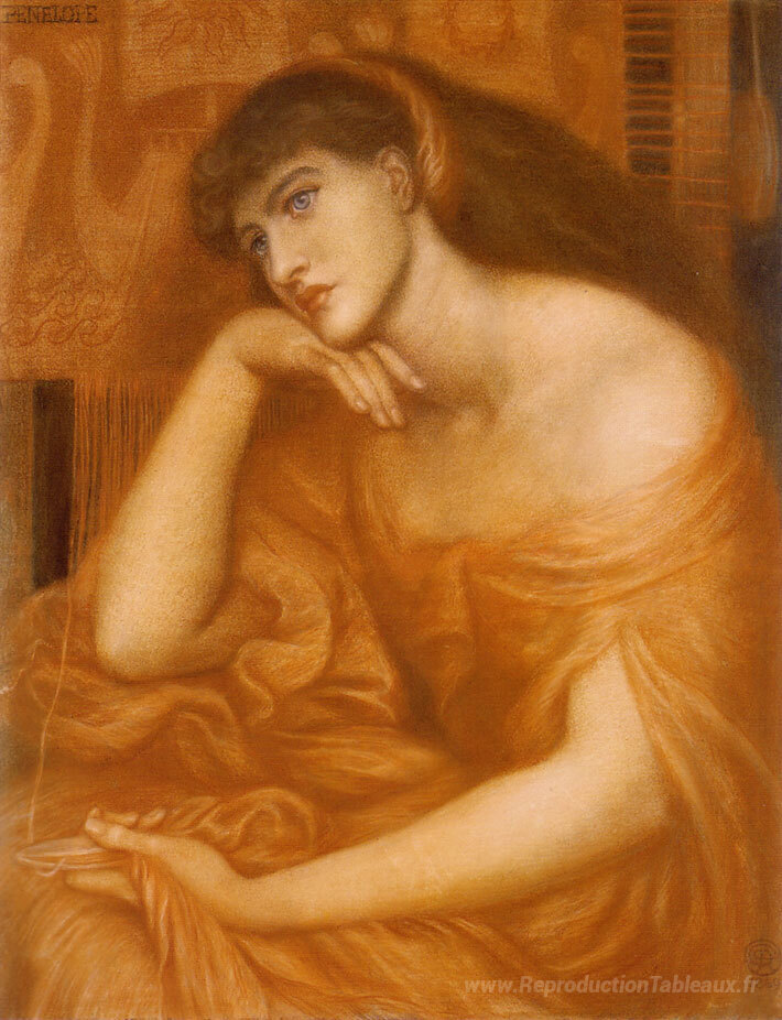 Nous vous proposons une reproduction artisanale sur toile du célèbre tableau 'Pénélope' de Dante Gabriel Rossetti, provenant du Musée de la Reproduction.