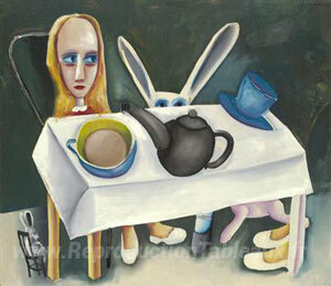 Nous vous proposons une reproduction artisanale sur toile du célèbre tableau 'Pieds sous la table' de Charles Blackman, provenant du Musée de la Reproduction.