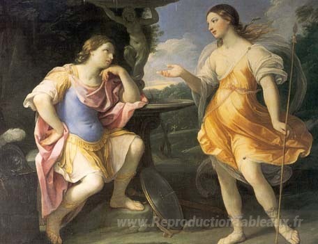 Nous vous proposons une reproduction artisanale sur toile du célèbre tableau 'Rencontre de Bradamante et Fiordispina' de Guido Reni, provenant du Musée de la Reproduction.