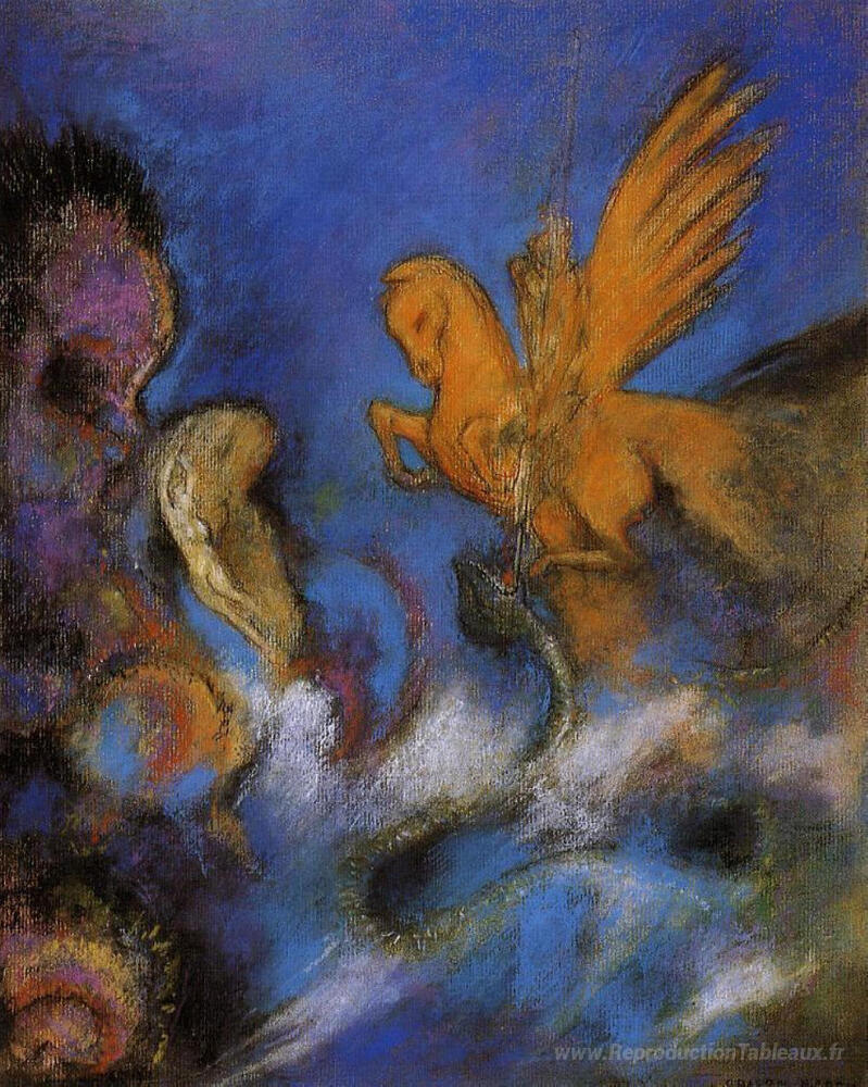 Nous vous proposons une reproduction artisanale sur toile du célèbre tableau 'Roger et Angelica' de Odilon Redon, provenant du Musée de la Reproduction.
