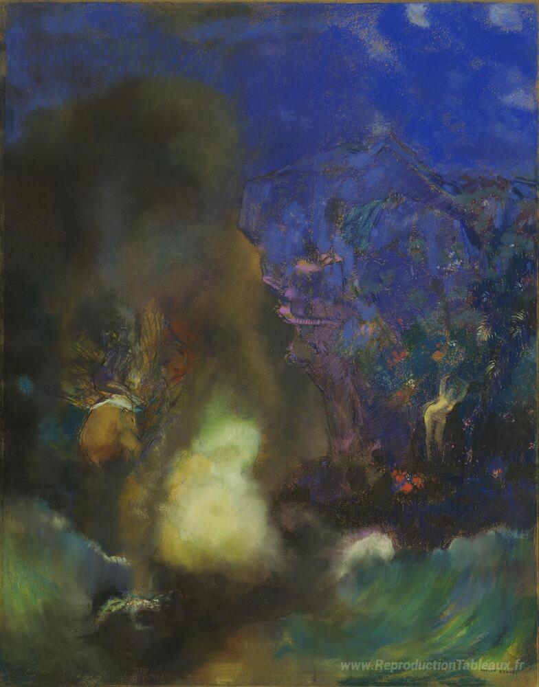 Nous vous proposons une reproduction artisanale sur toile du célèbre tableau 'Roger et Angelica' de Odilon Redon, provenant du Musée de la Reproduction.
