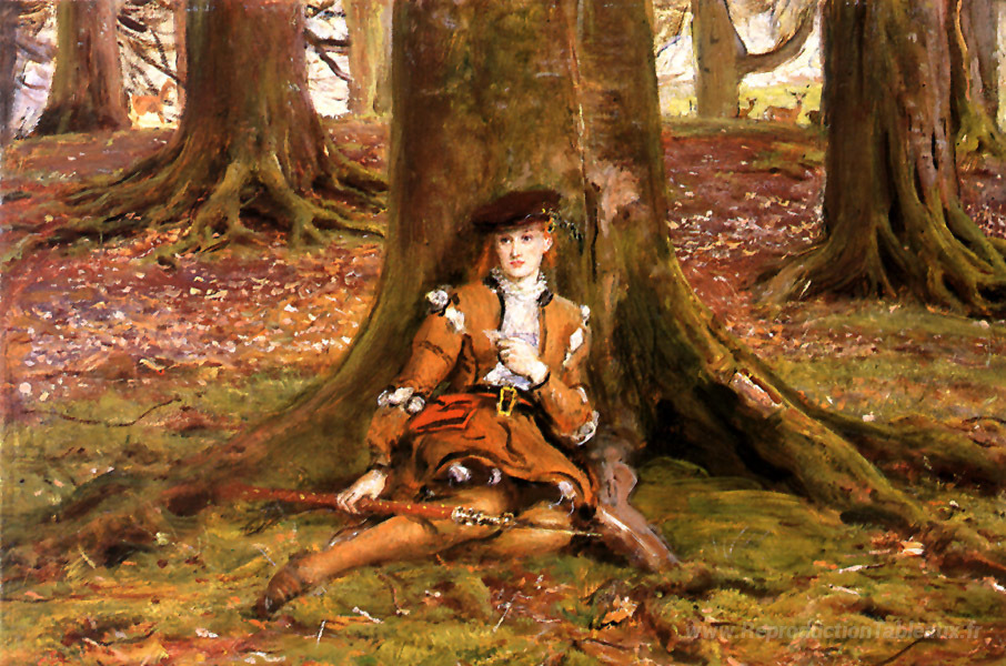 Nous vous proposons une reproduction artisanale sur toile du célèbre tableau 'Rosalind dans la forêt' de John Everett Millais, provenant du Musée de la Reproduction.
