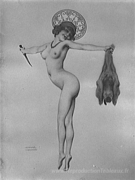 Nous vous proposons une reproduction artisanale sur toile du célèbre tableau 'Salomage' de Raphael Kirchner, provenant du Musée de la Reproduction.