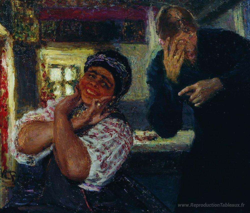 Nous vous proposons une reproduction artisanale sur toile du célèbre tableau 'Solokha et diacre' de Ilya Repin, provenant du Musée de la Reproduction.