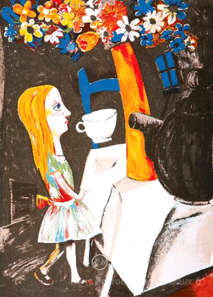Nous vous proposons une reproduction artisanale sur toile du célèbre tableau 'Temps toujours du thé' de Charles Blackman, provenant du Musée de la Reproduction.