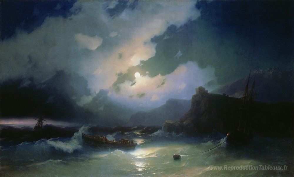 Nous vous proposons une reproduction artisanale sur toile du célèbre tableau 'Île de Patmos' de Ivan Aivazovsky, provenant du Musée de la Reproduction.