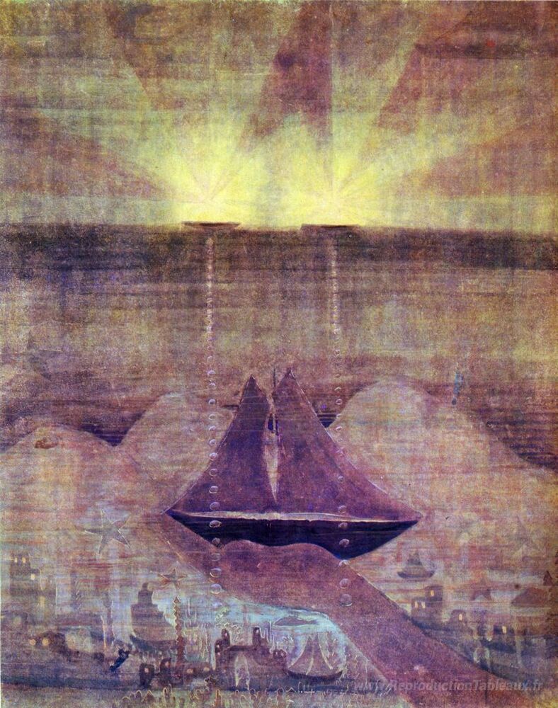 Nous vous proposons une reproduction artisanale sur toile du célèbre tableau 'Andante (Sonate de la mer)' de Mikalojus Ciurlionis, provenant du Musée de la Reproduction.