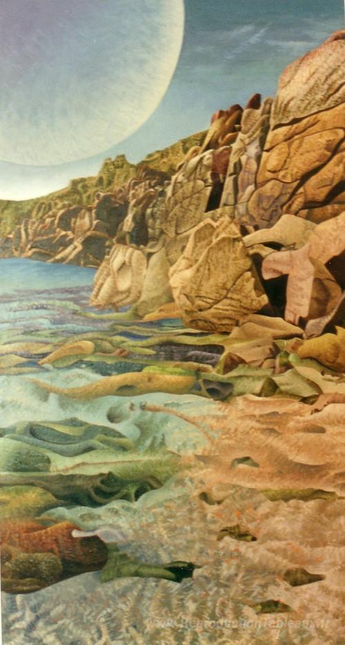 Nous vous proposons une reproduction artisanale sur toile du célèbre tableau 'Au-dessus de l'océan' de Godfrey Blow, provenant du Musée de la Reproduction.