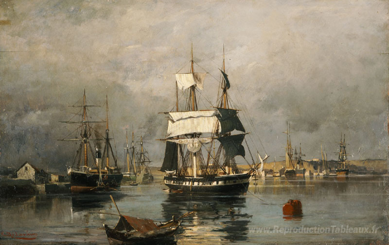 Nous vous proposons une reproduction artisanale sur toile du célèbre tableau 'Avant la tempête' de Konstantinos Volanakis, provenant du Musée de la Reproduction.