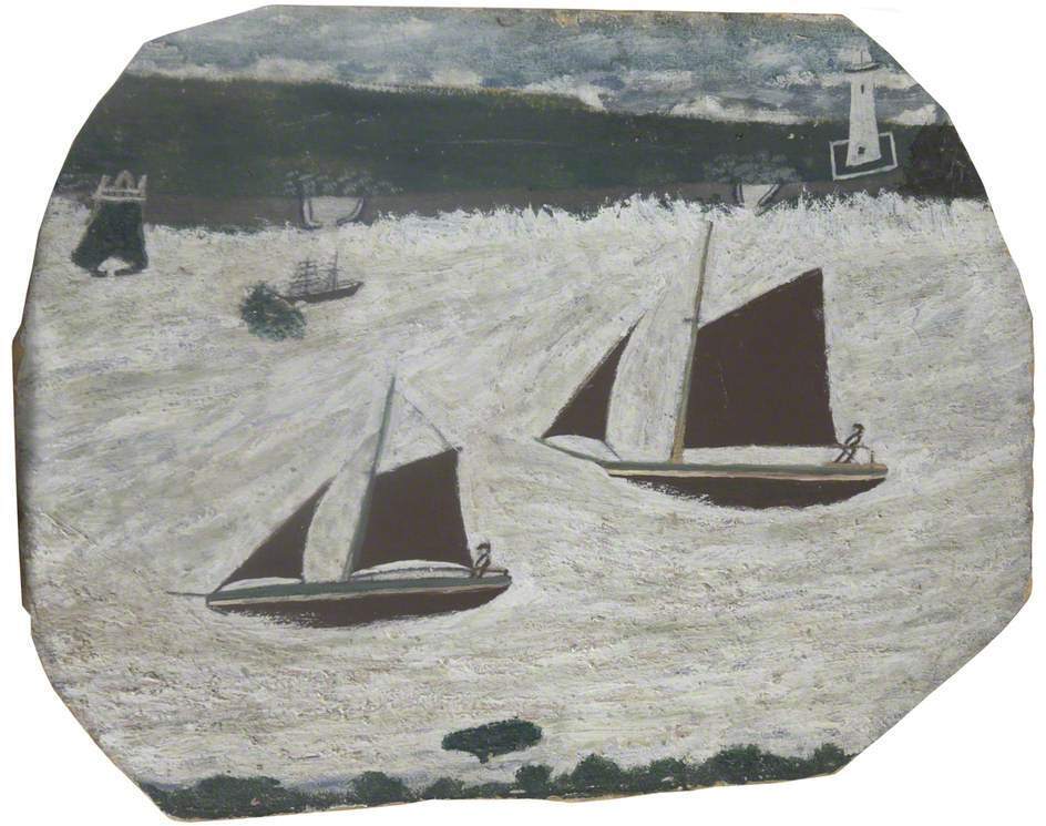 Nous vous proposons une reproduction artisanale sur toile du célèbre tableau 'Baia del Monte' de Alfred Wallis, provenant du Musée de la Reproduction.