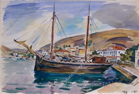 Nous vous proposons une reproduction artisanale sur toile du célèbre tableau 'Balaklava. Expédié sur le rivage.' de Pyotr Konchalovsky, provenant du Musée de la Reproduction.