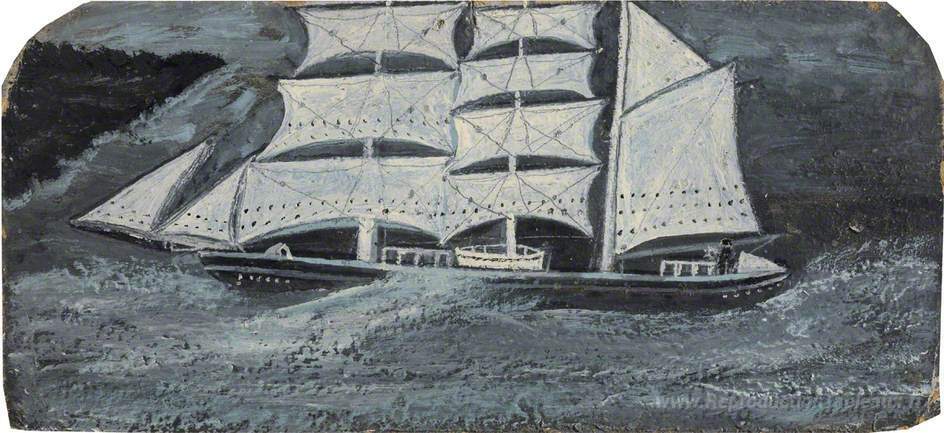 Nous vous proposons une reproduction artisanale sur toile du célèbre tableau 'Barque avec un homme au volant sur une mer orageuse' de Alfred Wallis, provenant du Musée de la Reproduction.