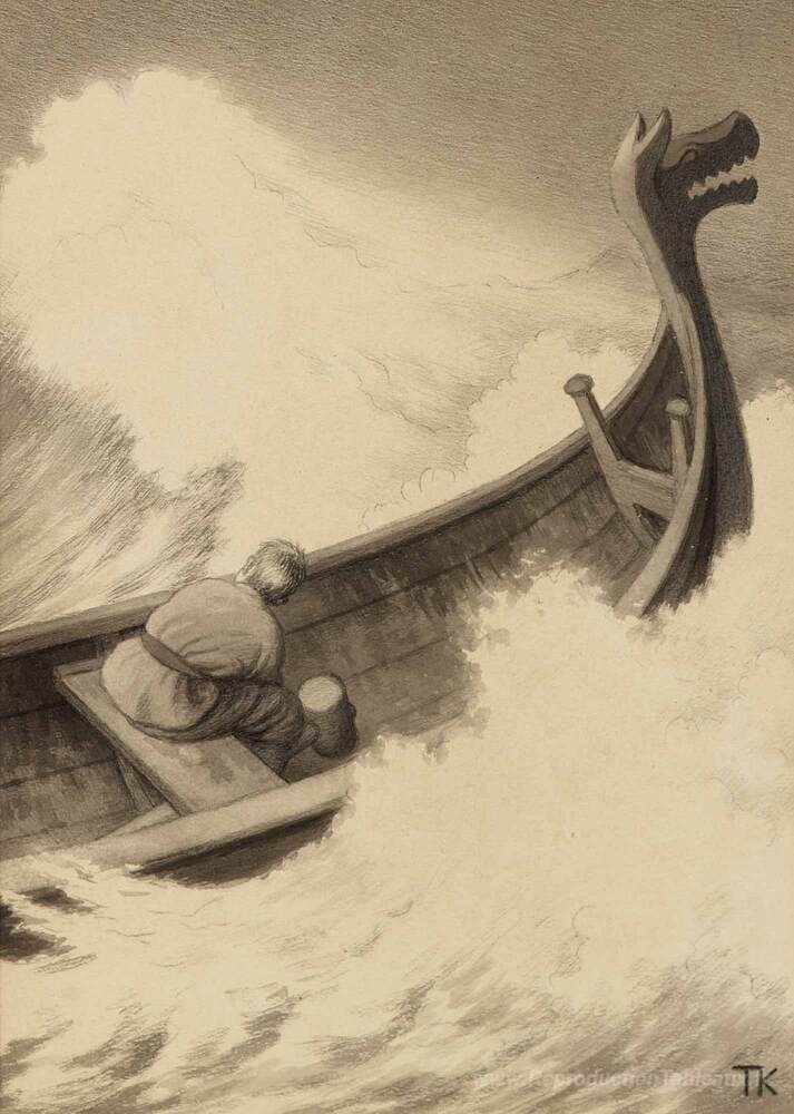 Nous vous proposons une reproduction artisanale sur toile du célèbre tableau 'Barrage de Fuegl' de Theodor Severin Kittelsen, provenant du Musée de la Reproduction.