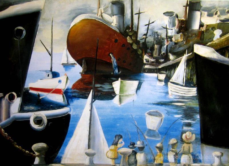 Nous vous proposons une reproduction artisanale sur toile du célèbre tableau 'Bateaux à Williamstown' de Charles Blackman, provenant du Musée de la Reproduction.