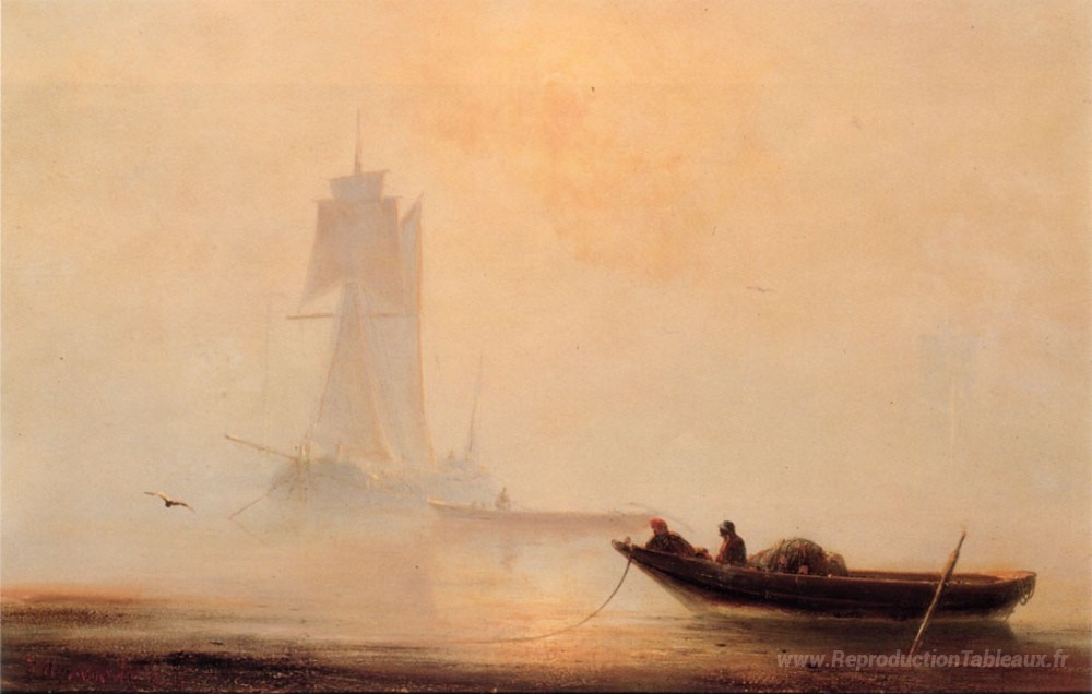 Nous vous proposons une reproduction artisanale sur toile du célèbre tableau 'Bateaux de pêche dans un port' de Ivan Aivazovsky, provenant du Musée de la Reproduction.