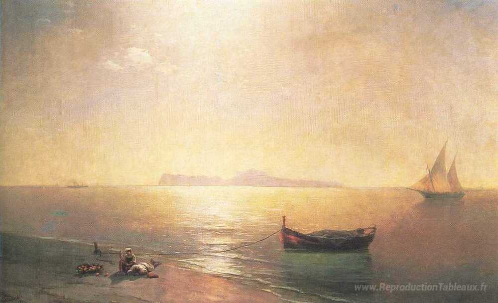 Nous vous proposons une reproduction artisanale sur toile du célèbre tableau 'Calme sur la mer Méditerranée' de Ivan Aivazovsky, provenant du Musée de la Reproduction.