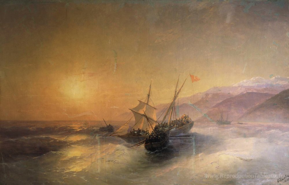 Découvrez l'univers intemporel des peintures à l'huile avec notre sélection de reproductions d'œuvres d'art soigneusement choisies. Parmi celles-ci se distingue Capturer Kocherma turc, une œuvre éblouissante de l'artiste renommé Ivan Aivazovsky. Célèbre pour son habileté à capturer la lumière et le mouvement, Aivazovsky nous transporte dans un paysage maritime où les vagues dansent sous un ciel chargé d'émotions. Ses techniques de superposition et de glacis révèlent une maîtrise inégalée qui donne vie à chaque détail.