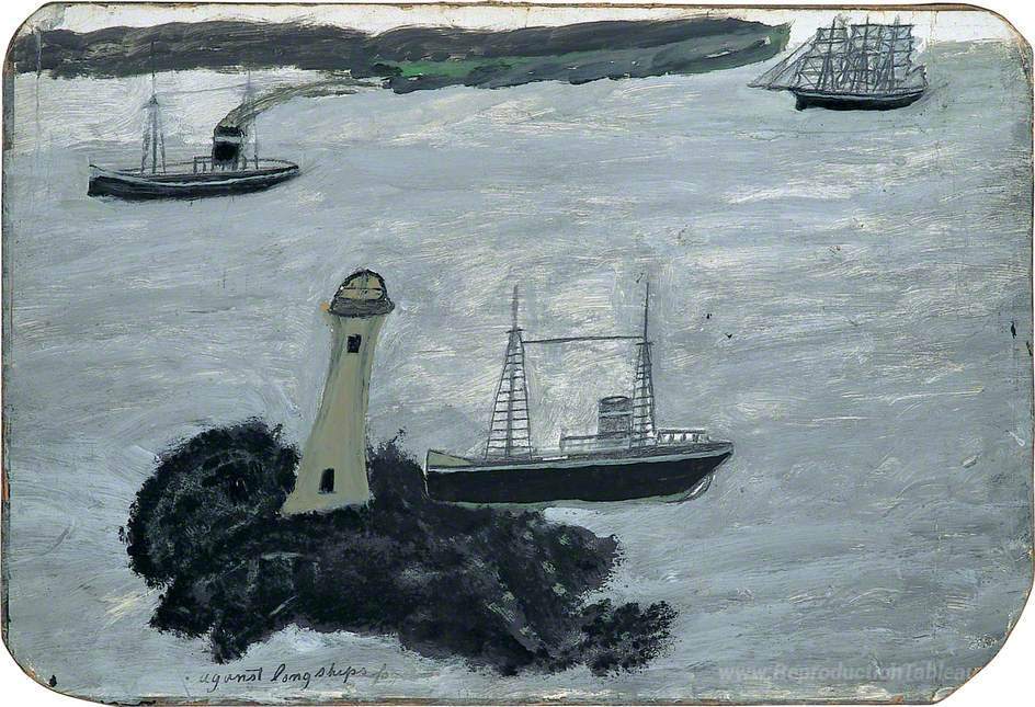 Nous vous proposons une reproduction artisanale sur toile du célèbre tableau 'Contre le brouillard' de Alfred Wallis, provenant du Musée de la Reproduction.