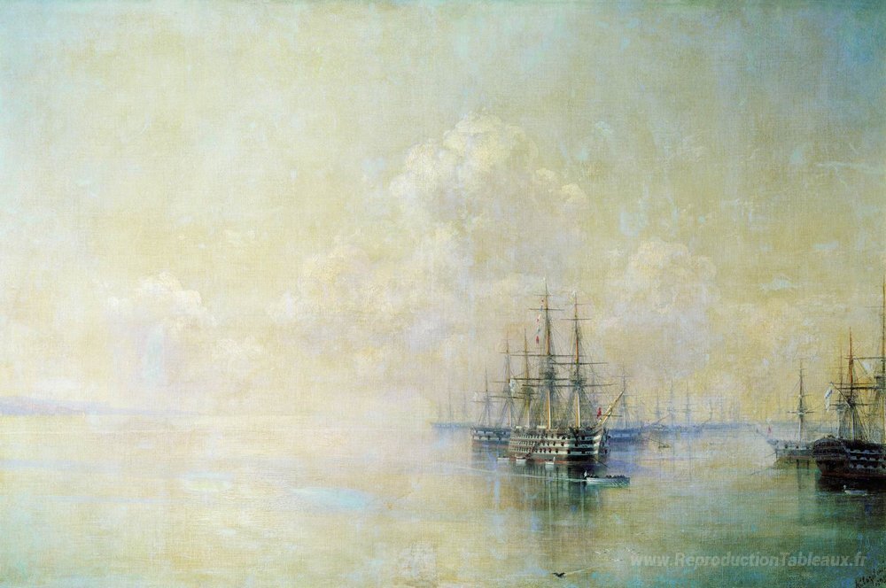 Nous vous proposons une reproduction artisanale sur toile du célèbre tableau 'Escadron de la flotte de la mer Noire avant de faire le raid Sev' de Ivan Aivazovsky, provenant du Musée de la Reproduction.