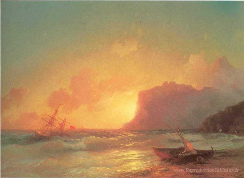 Nous vous proposons une reproduction artisanale sur toile du célèbre tableau 'La mer. Koktebel.' de Ivan Aivazovsky, provenant du Musée de la Reproduction.