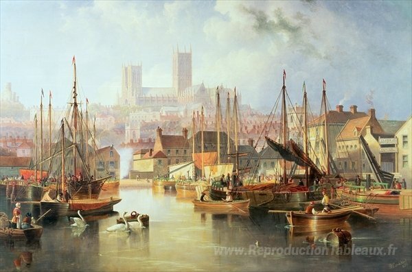 Nous vous proposons une reproduction artisanale sur toile du célèbre tableau 'La piscine de Brayford et la cathédrale de Lincoln' de John Wilson Carmichael, provenant du Musée de la Reproduction.