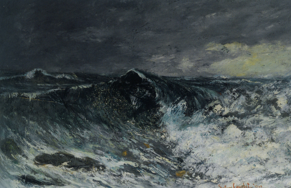 Nous vous proposons une reproduction artisanale sur toile du célèbre tableau 'La vague' de Gustave Courbet, provenant du Musée de la Reproduction.