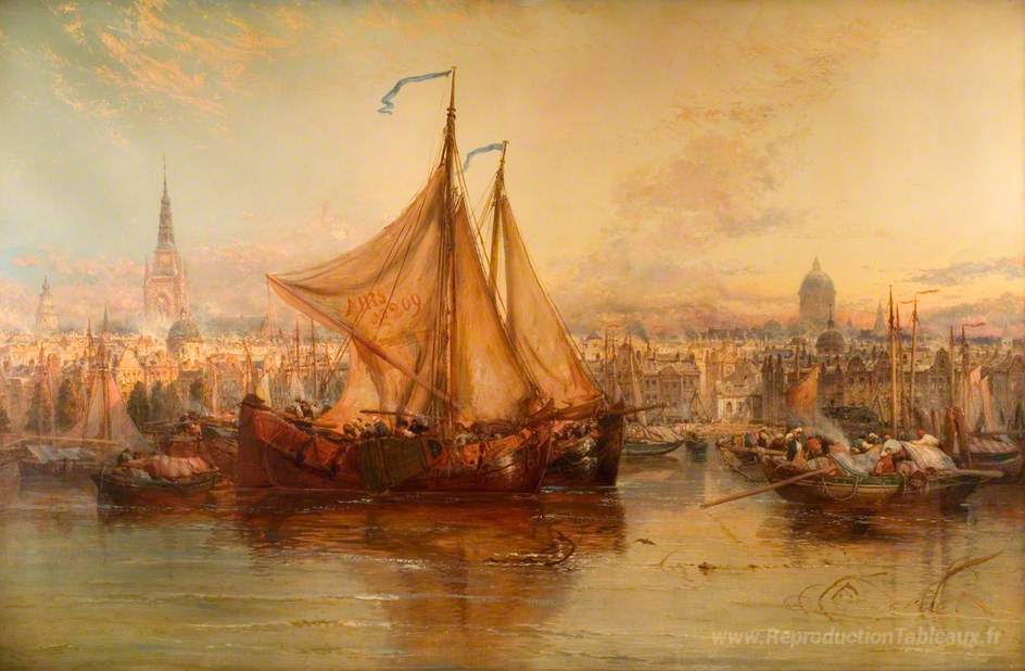 Nous vous proposons une reproduction artisanale sur toile du célèbre tableau 'Le port, Amsterdam' de James Webb , provenant du Musée de la Reproduction.
