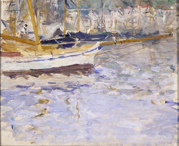Nous vous proposons une reproduction artisanale sur toile du célèbre tableau 'Le port de Nice' de Berthe Morisot, provenant du Musée de la Reproduction.