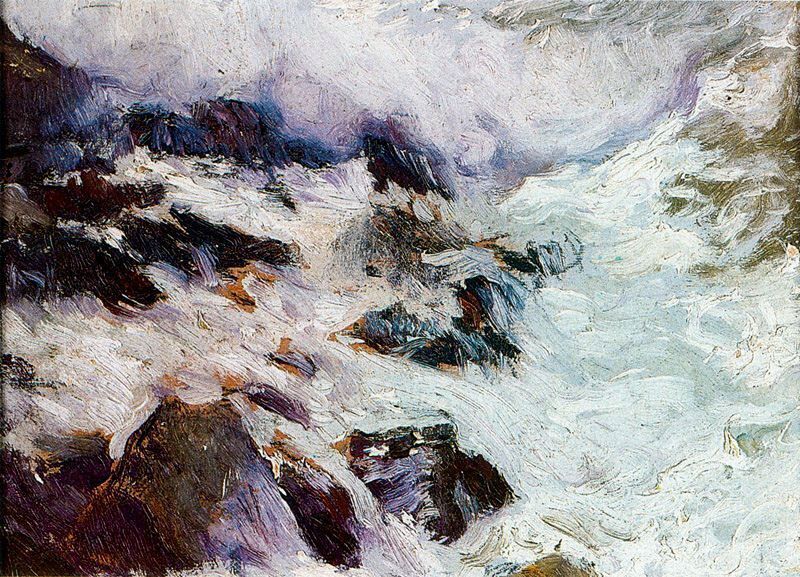 Nous vous proposons une reproduction artisanale sur toile du célèbre tableau 'Mer et rochers - Jávea' de Joaquín Sorolla, provenant du Musée de la Reproduction.