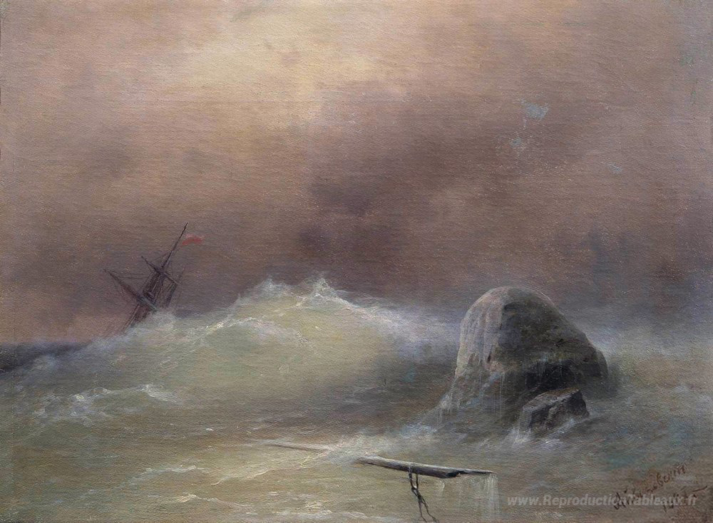 Nous vous proposons une reproduction artisanale sur toile du célèbre tableau 'Mer orageuse' de Ivan Aivazovsky, provenant du Musée de la Reproduction.