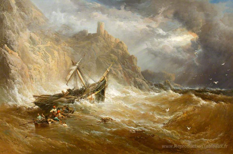 Nous vous proposons une reproduction artisanale sur toile du célèbre tableau 'Naufrage' de James Webb , provenant du Musée de la Reproduction.