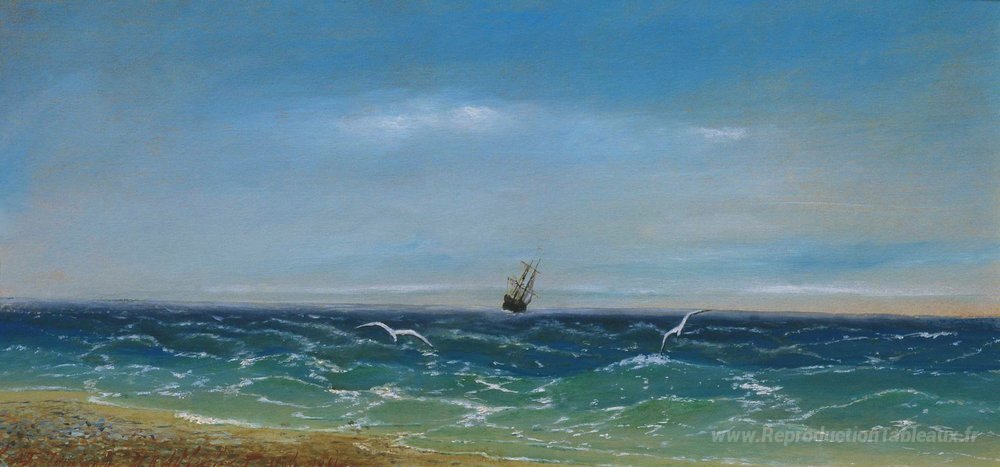 Nous vous proposons une reproduction artisanale sur toile du célèbre tableau 'Naviguer dans la mer' de Ivan Aivazovsky, provenant du Musée de la Reproduction.