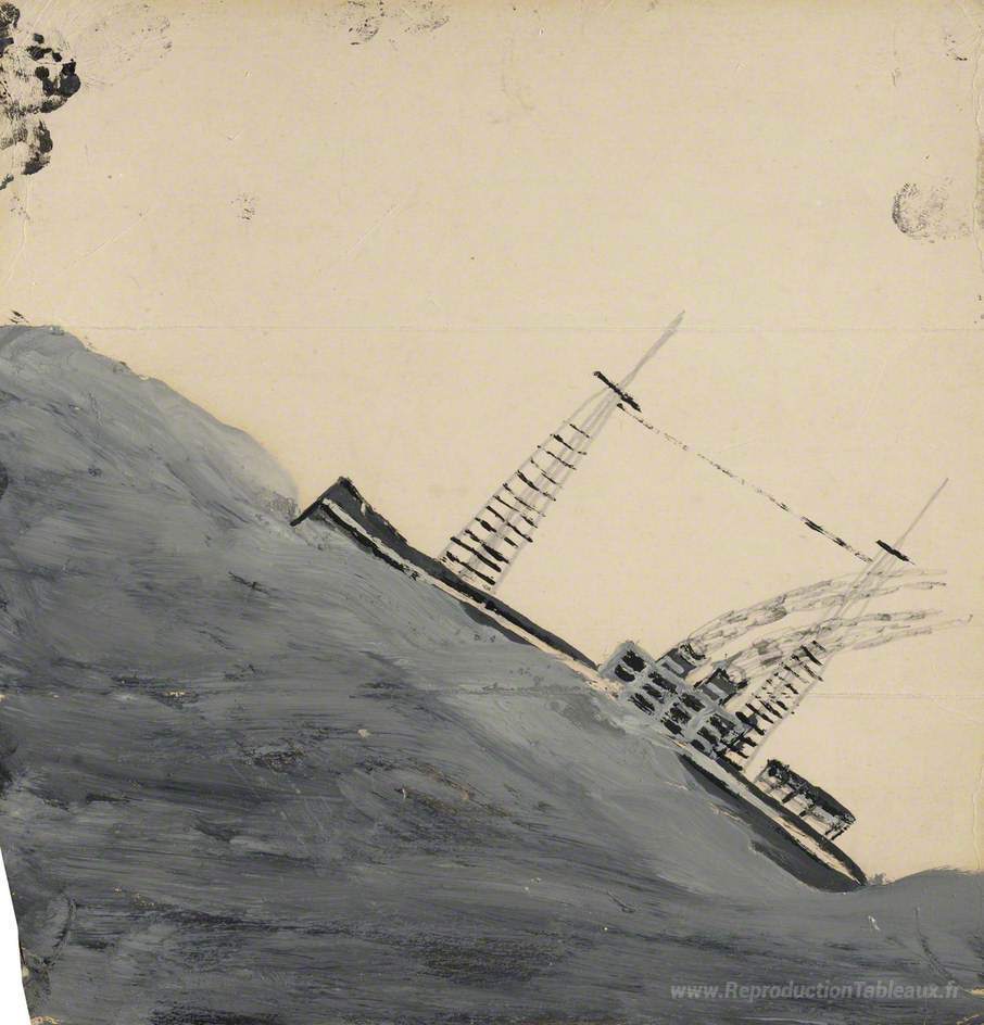 Nous vous proposons une reproduction artisanale sur toile du célèbre tableau 'Navire à moteur montant une vague' de Alfred Wallis, provenant du Musée de la Reproduction.