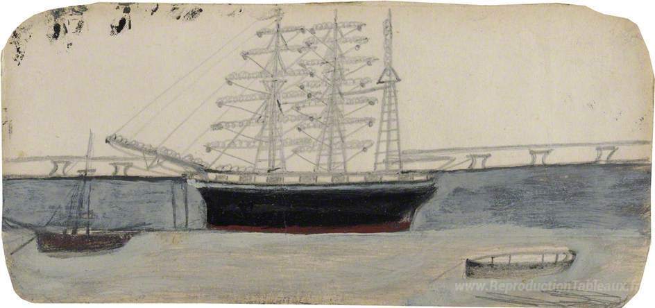 Nous vous proposons une reproduction artisanale sur toile du célèbre tableau 'Navire à trois mâts' de Alfred Wallis, provenant du Musée de la Reproduction.