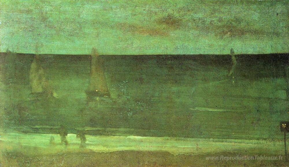Nous vous proposons une reproduction artisanale sur toile du célèbre tableau 'Nocturne: bleu et argent - bognor' de James McNeill Whistler, provenant du Musée de la Reproduction.
