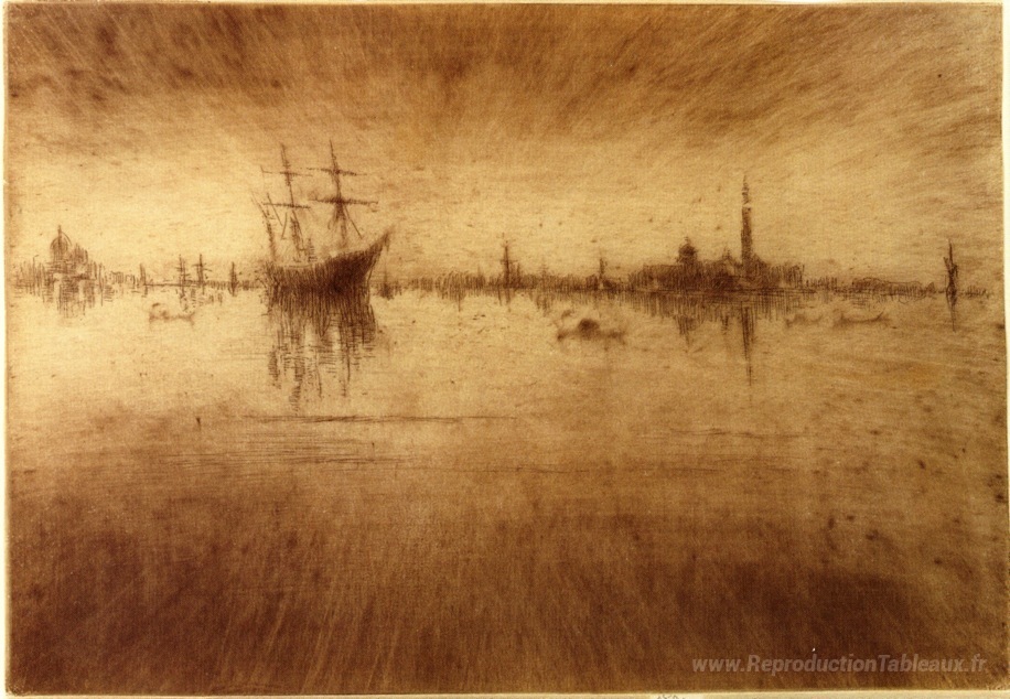 Nous vous proposons une reproduction artisanale sur toile du célèbre tableau 'Nocturne' de James McNeill Whistler, provenant du Musée de la Reproduction.