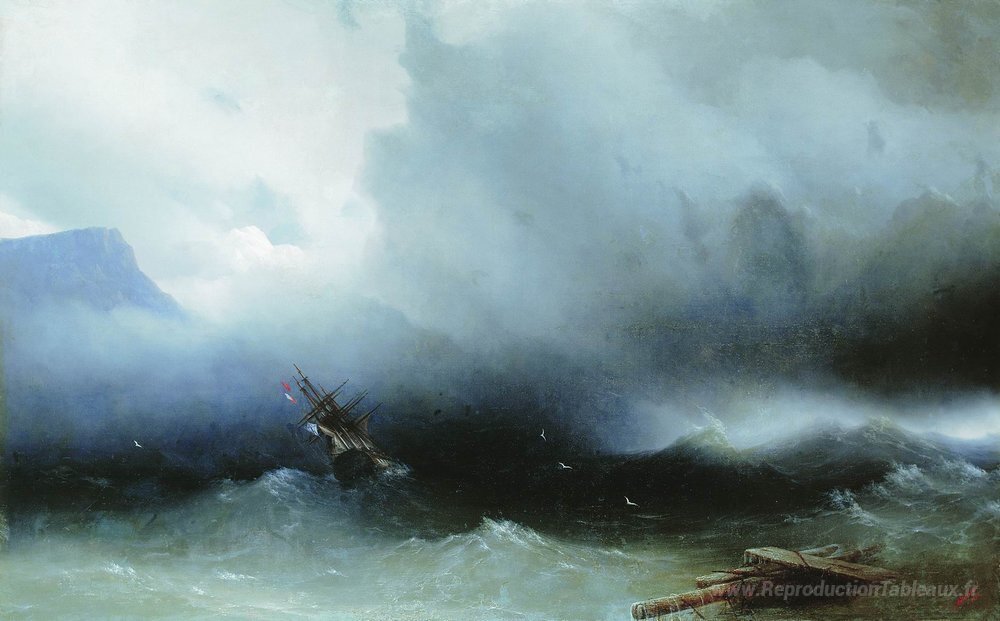 Nous vous proposons une reproduction artisanale sur toile du célèbre tableau 'Ouragan à la mer' de Ivan Aivazovsky, provenant du Musée de la Reproduction.