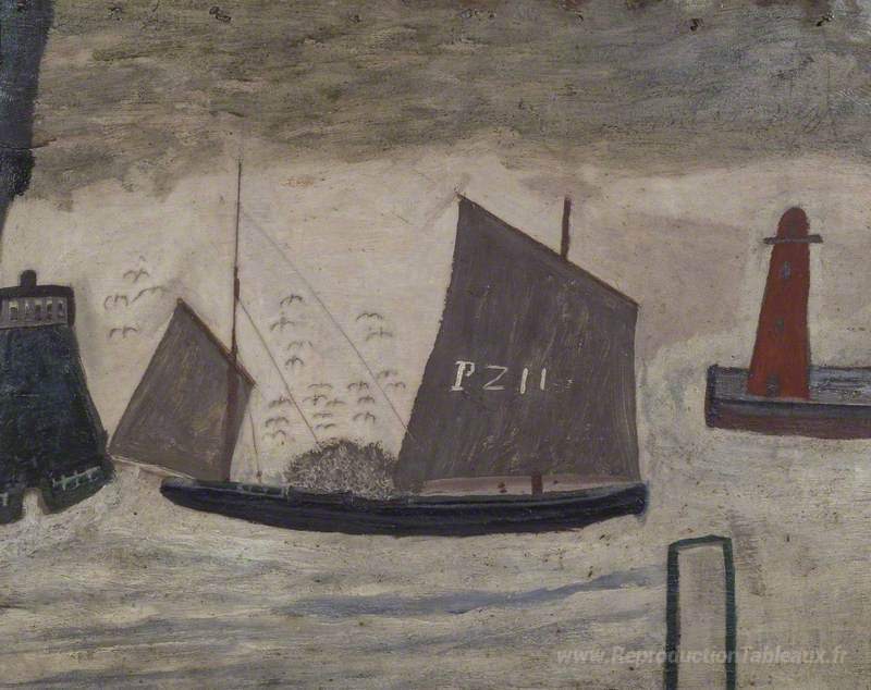 Nous vous proposons une reproduction artisanale sur toile du célèbre tableau 'P. Z. 11' de Alfred Wallis, provenant du Musée de la Reproduction.