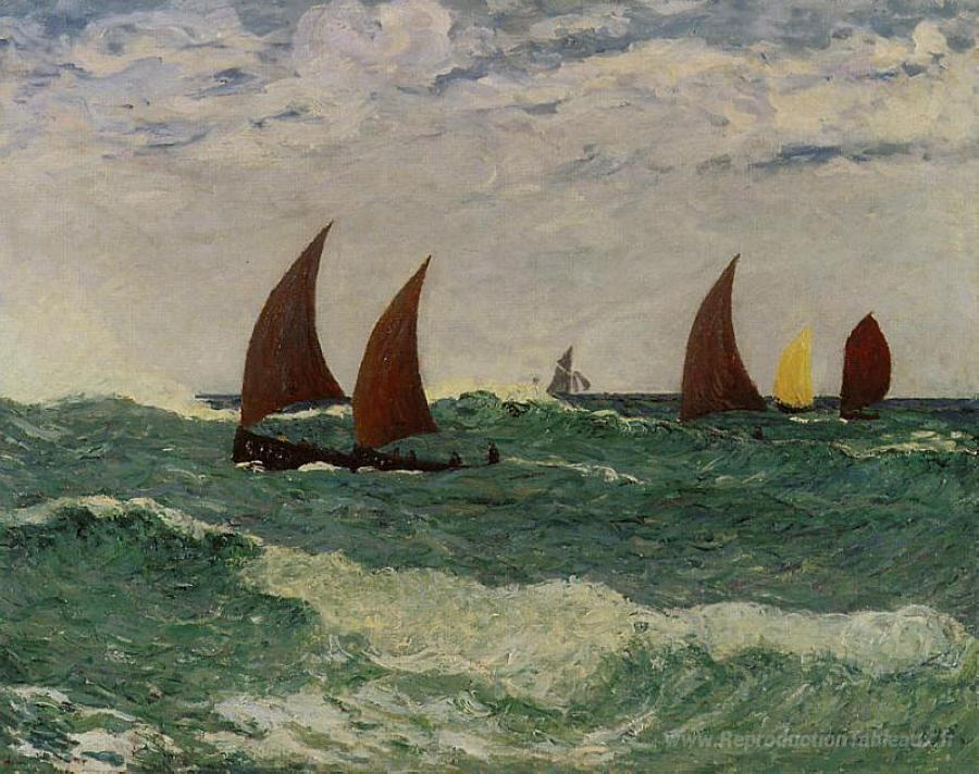 Nous vous proposons une reproduction artisanale sur toile du célèbre tableau 'Passer par le bar' de Maxime Maufra, provenant du Musée de la Reproduction.