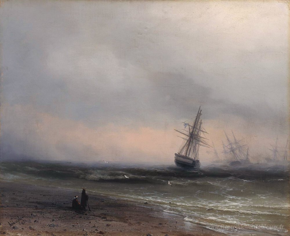 Nous vous proposons une reproduction artisanale sur toile du célèbre tableau 'Paysage marin en Crimée' de Ivan Aivazovsky, provenant du Musée de la Reproduction.