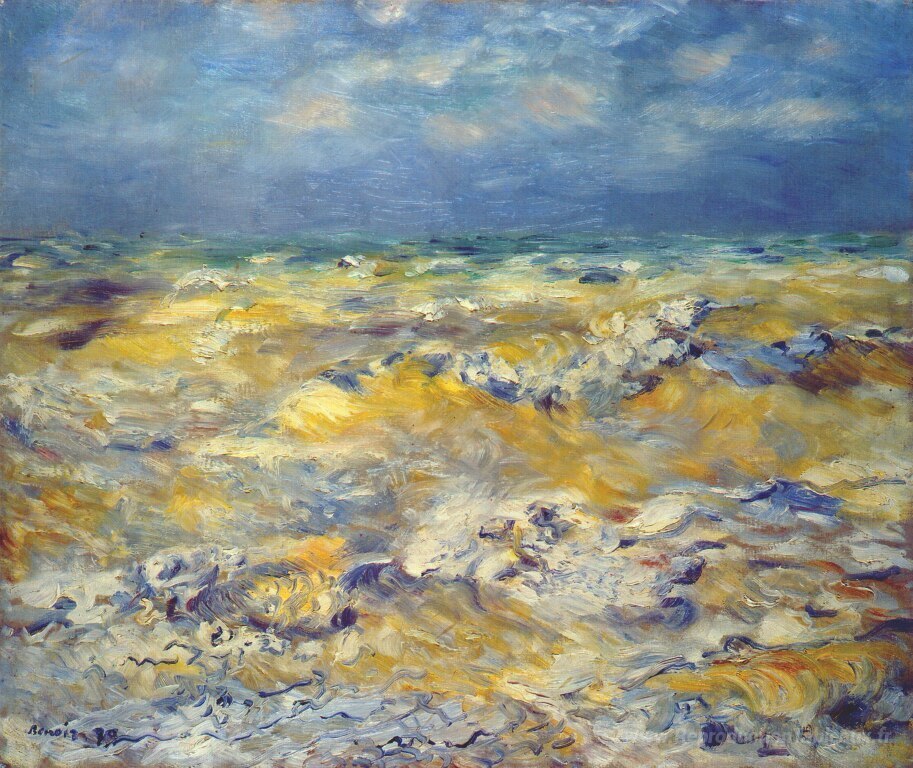 Nous vous proposons une reproduction artisanale sur toile du célèbre tableau 'Paysage marin près de Berneval' de Pierre-Auguste Renoir, provenant du Musée de la Reproduction.