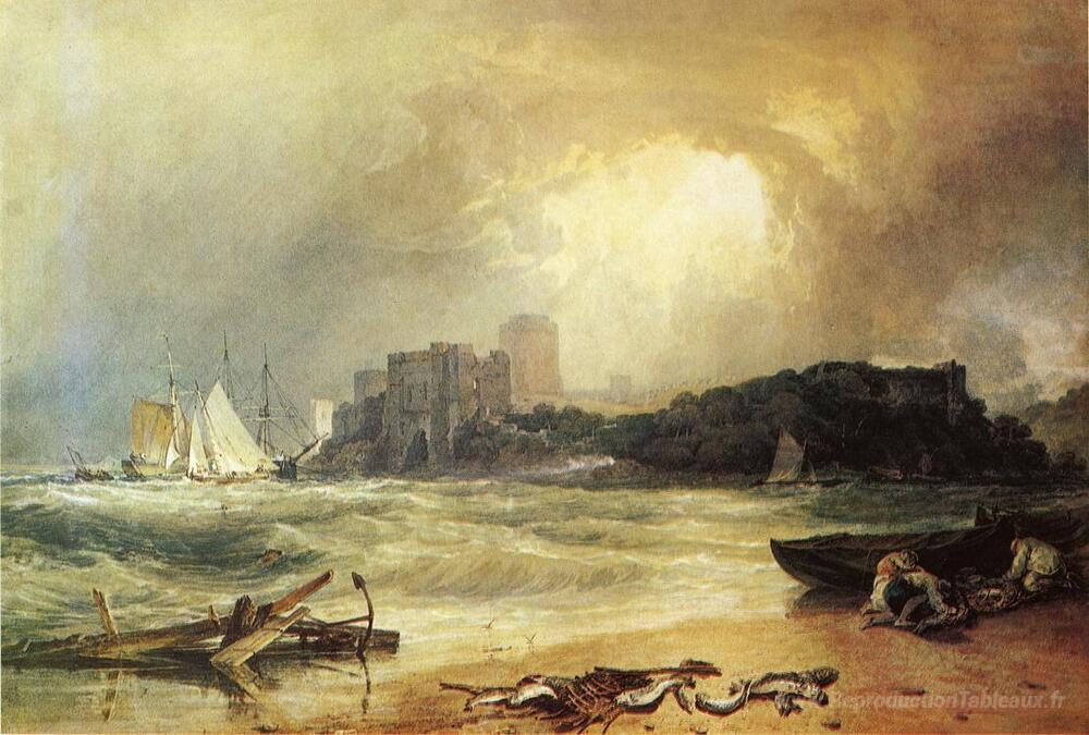 Nous vous proposons une reproduction artisanale sur toile du célèbre tableau 'Pembroke Caselt, sud du Pays de Galles, Thunder Storm s'approcha' de William Turner, provenant du Musée de la Reproduction.