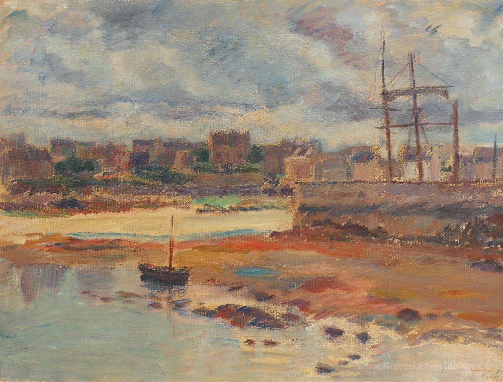 Nous vous proposons une reproduction artisanale sur toile du célèbre tableau 'Portul Roscoff' de Jean Alexandru Steriadi, provenant du Musée de la Reproduction.