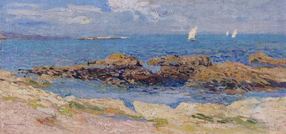 Nous vous proposons une reproduction artisanale sur toile du célèbre tableau 'Près de Saint Malo' de Henri Martin, provenant du Musée de la Reproduction.